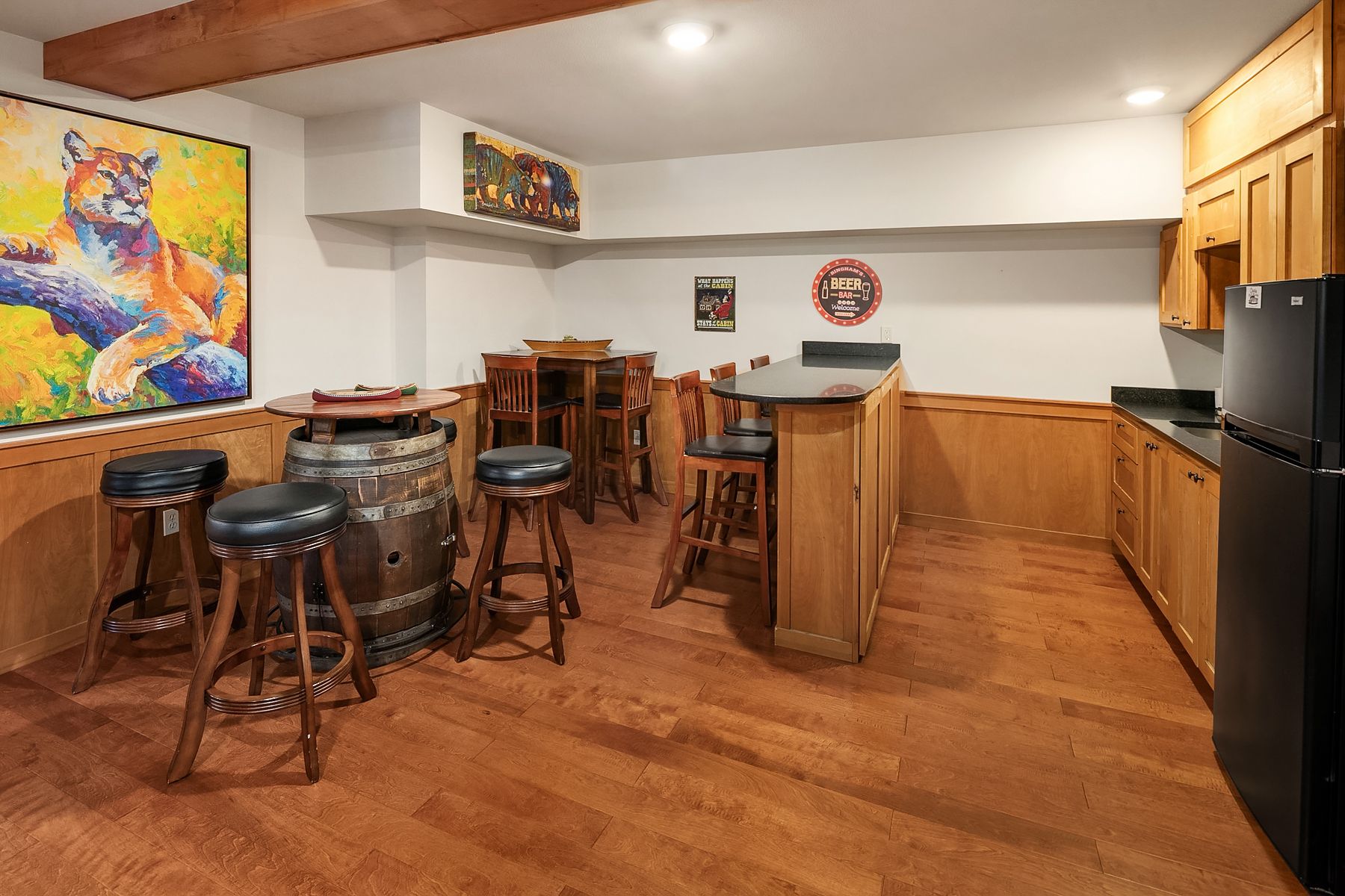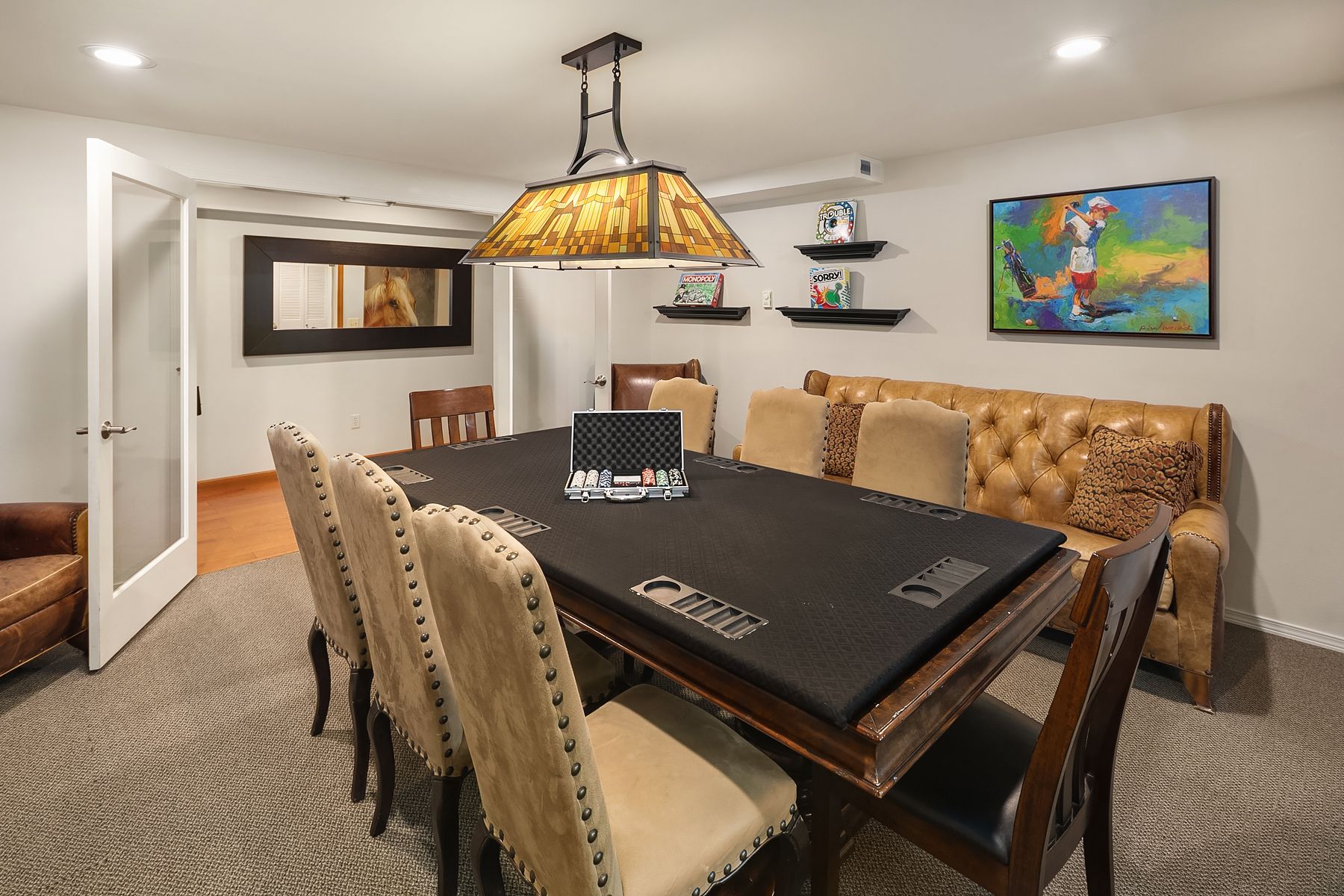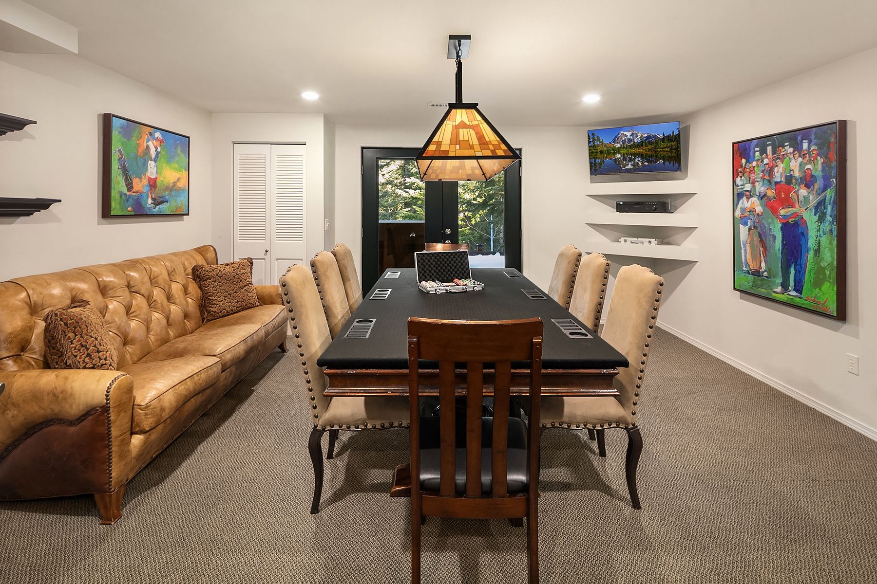 * Card playing room in downstairs basement w/ large card table, seating for 6 and a couch!