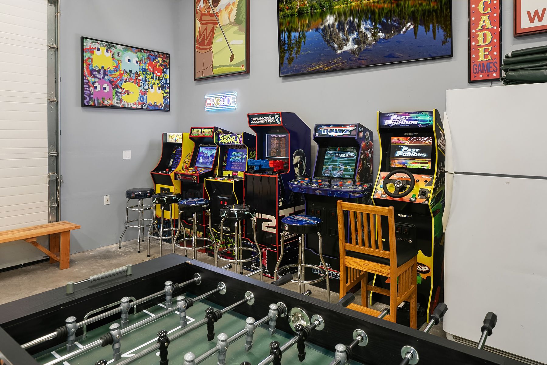 * Detached Garage Game Room w/Smart TV, 6 Video Arcade Games, Air Hockey, Ping-Pong, Foosball and a Card Table!