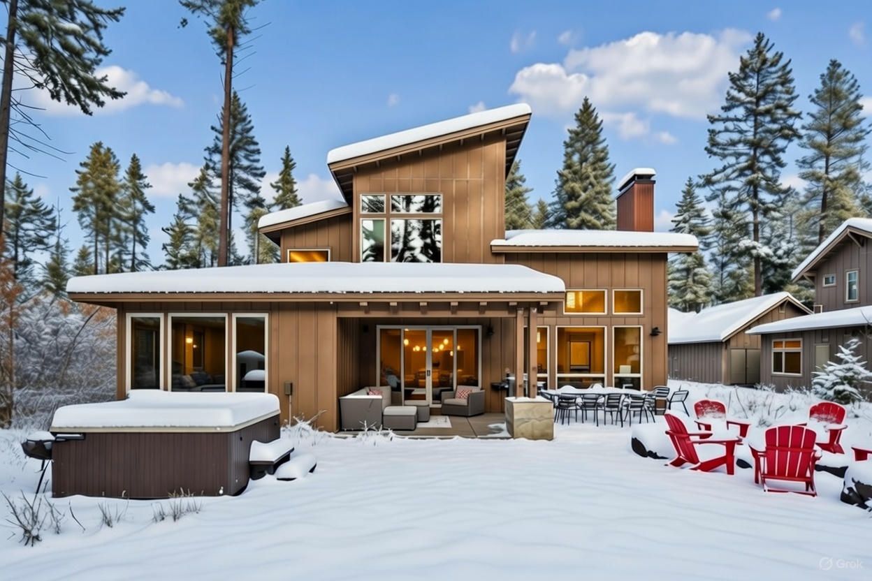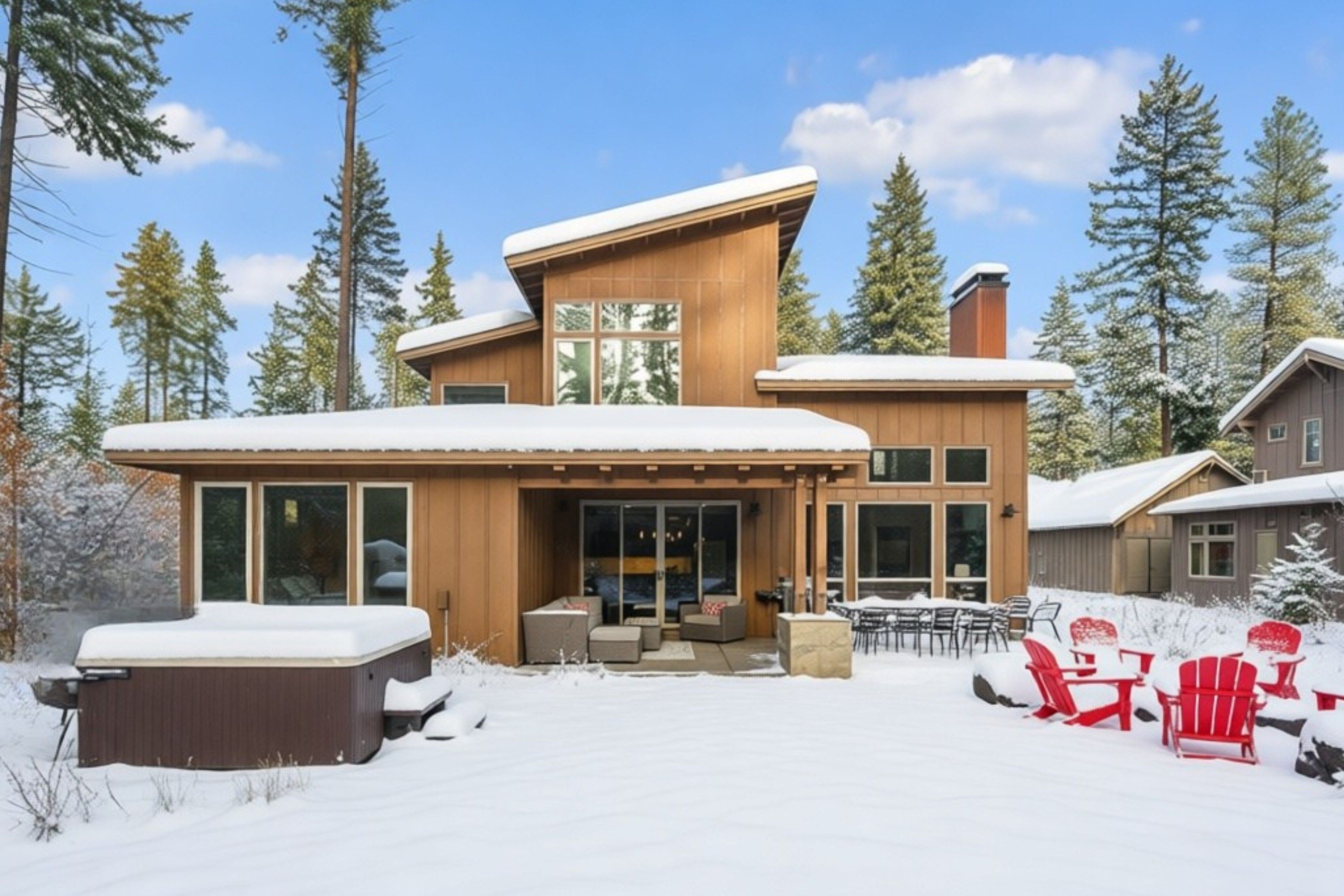 This newly constructed contemporary mountain home is beautifully appointed and designed with comfort and entertaining in mind. The open concept great room allows for easy flow between the living area and the outdoors. You will be surrounded by floor to ceiling windows and glass doors, wood floors and beams, and a large stone gas fireplace. Perfect for cozy evenings together, or entertaining family and friends on the large patio.