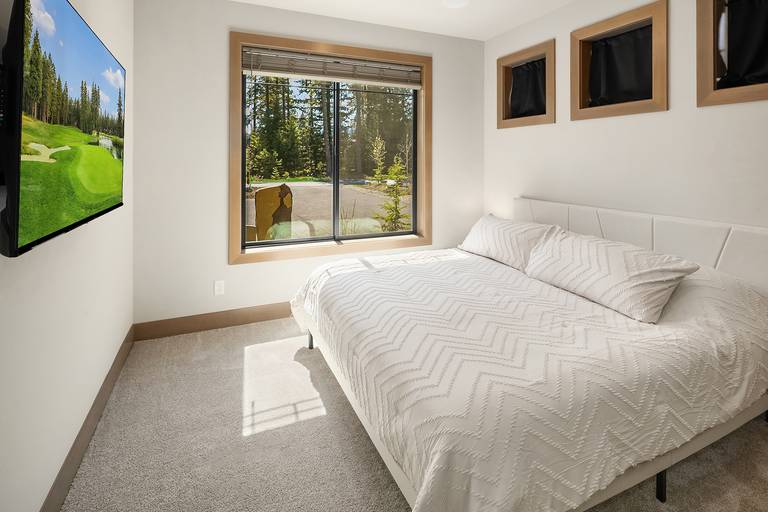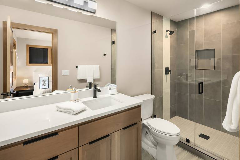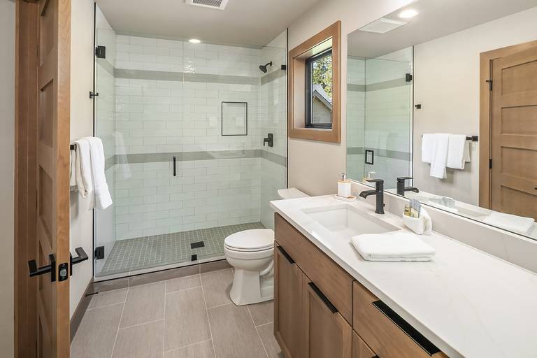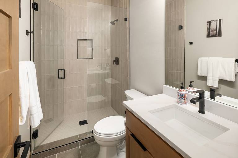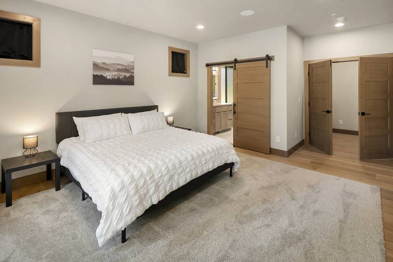 * 2nd main floor bedroom features a king bed and is supported by a full bathroom outside the hallway with a walk-in shower.