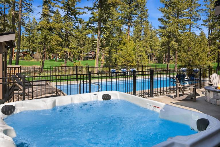 Newly constructed modern-mountain home overlooking the 15th Hole of the Rope Rider Golf Course! The whole family will enjoy the open great room, private pool, hot tub, and the spectacular outdoor living space! This is the perfect retreat for 4 to 5 couples or larger family groups!