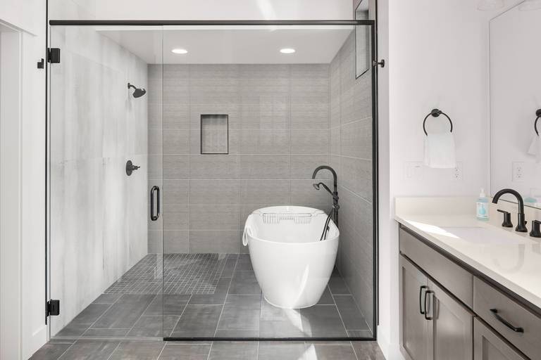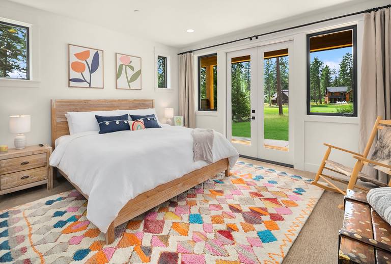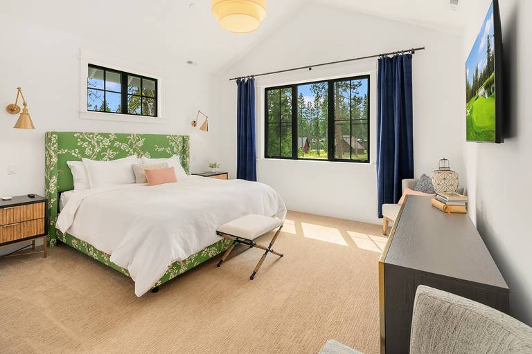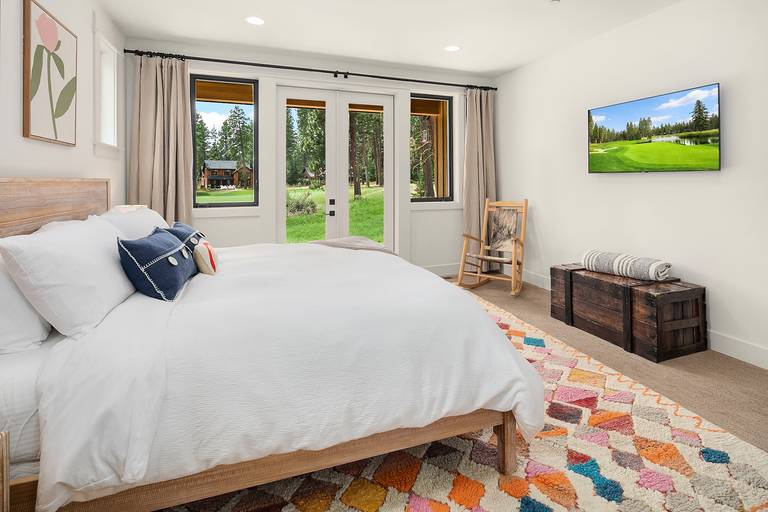 •	Main floor master with a king size bed, large TV, and an attached private bath.