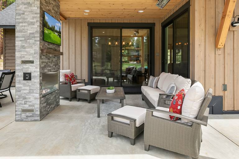* Covered outdoor patio w/TV and Fireplace | Covered 2nd floor deck w/heaters