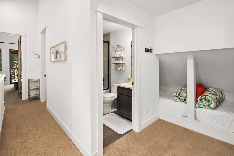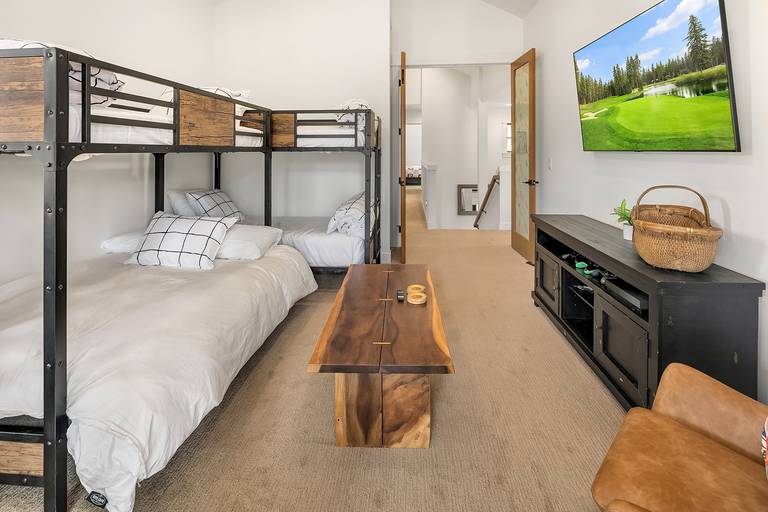 •	2nd floor bonus bedroom with a twin over full bunk, a twin over twin bunk, and a large TV.