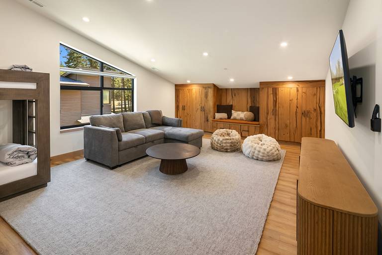 * The 2nd floor bunk room (behind barn doors off the bonus room) has two sets of full/full bunk beds and a twin bed.