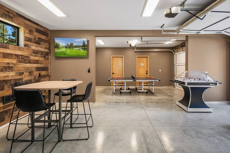 * Heated Garage Game Room with Smart TV, Ping-Pong, Air Hockey, and Table Hockey