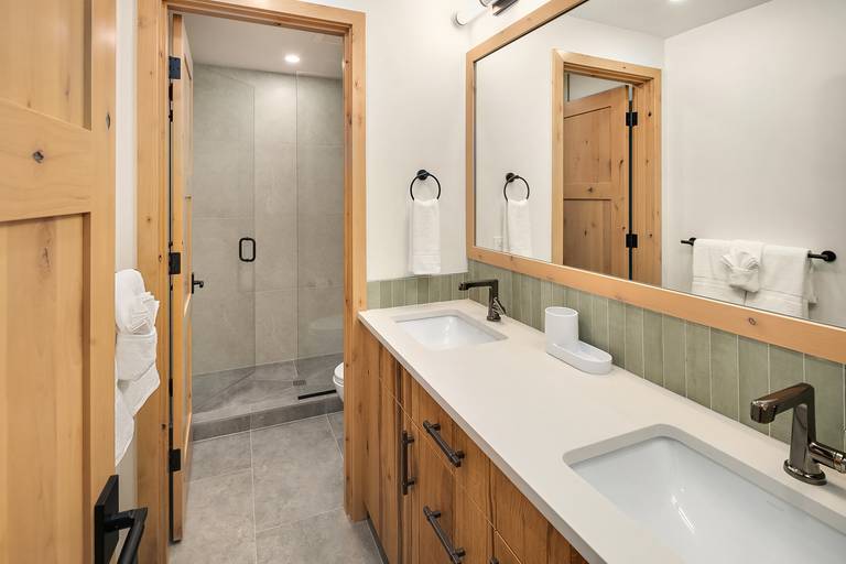 * The 2nd floor bonus room has a twin/twin bunk, TV lounge, and private bathroom with dual sinks and a walk-in shower.