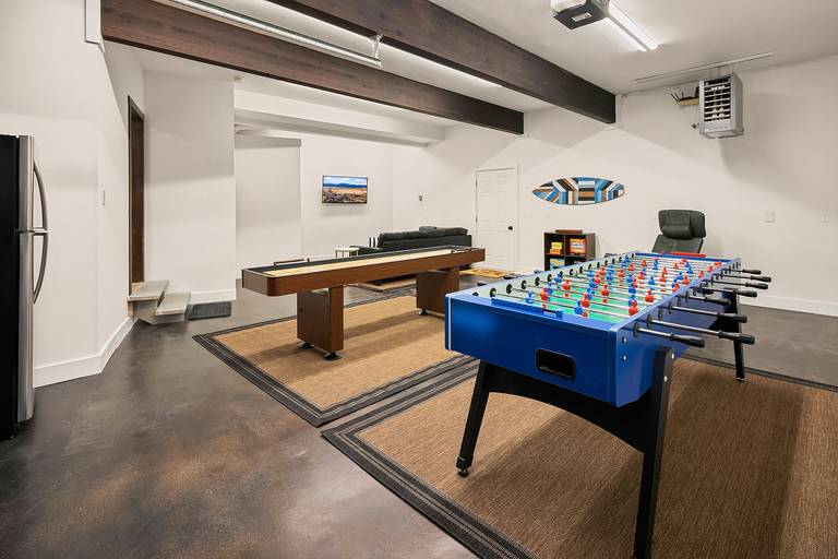 * Garage Game Room w/TV Lounge, Shuffleboard and 8 Person Foosball