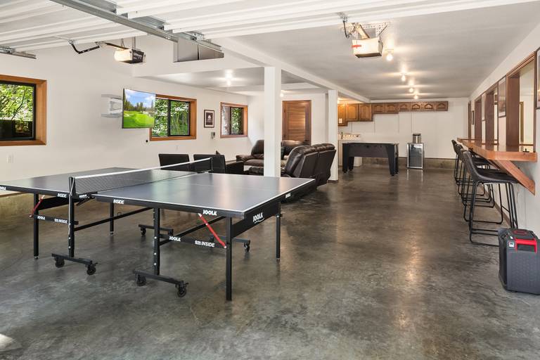 * Heated Garage Game Room with Ping Pong, Foosball, Air Hockey, Moon Patrol, Frogger, Ms. Pac Man and Cruisin World Arcade Games, Shuffleboard, Large TV and 1/2 bath