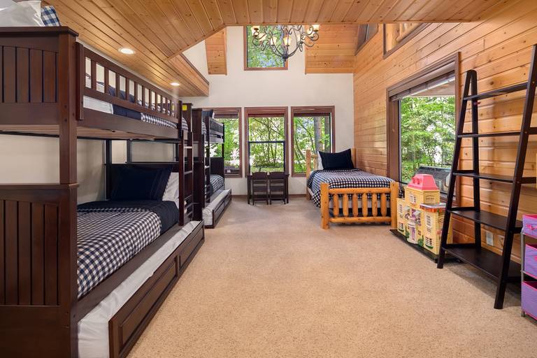 * 3rd main floor bedroom (located in the second wing) is a bunk room with two sets of twin/twin bunks, two twin trundles and a twin bed. (This room is not separated with a door).