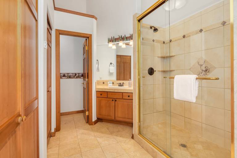 * There is a full guest bath on both the upper and main floor of the main wing. Each bathroom has a walk-in shower.