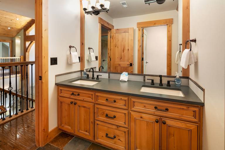 * There are two additional guest bedrooms on the 2nd floor with queen beds. One of the bedrooms also has a twin trundle bed. These two bedrooms and the bunk room are supported by a guest bath with dual sinks and a tub/shower combo.
