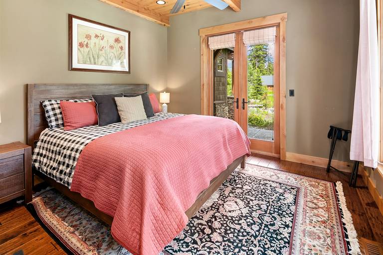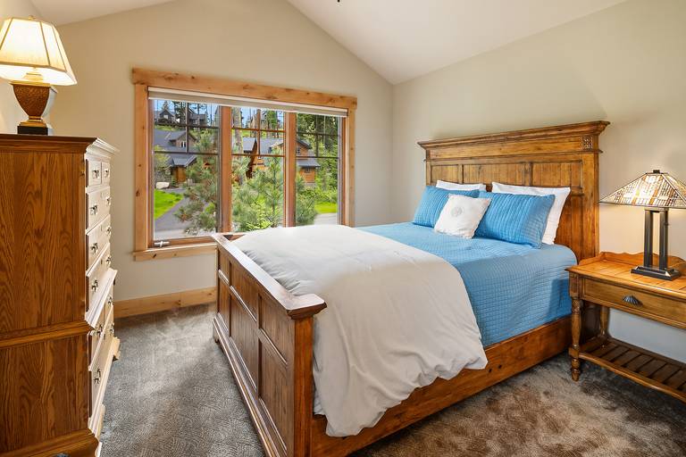 * The guest bedroom on the main floor features a king bed, and there is a full bath with a shower just across the hallway.