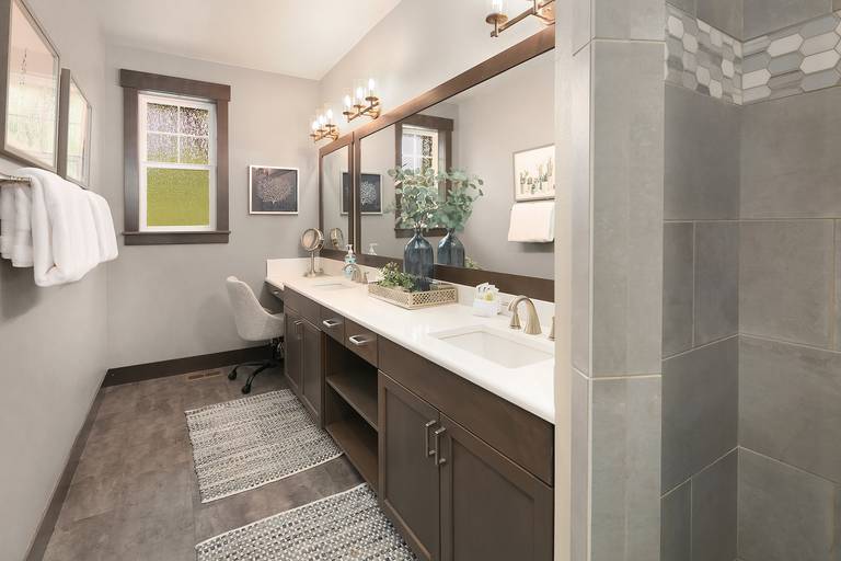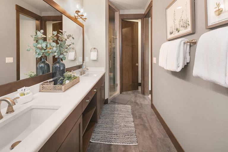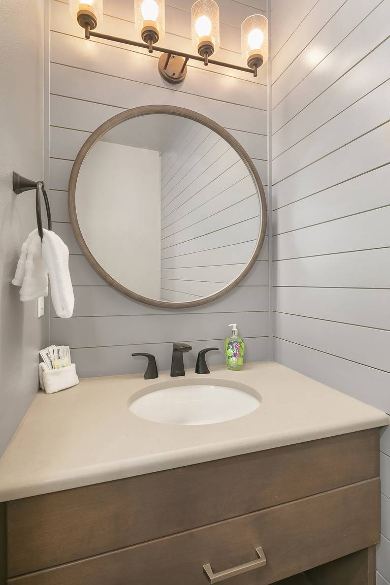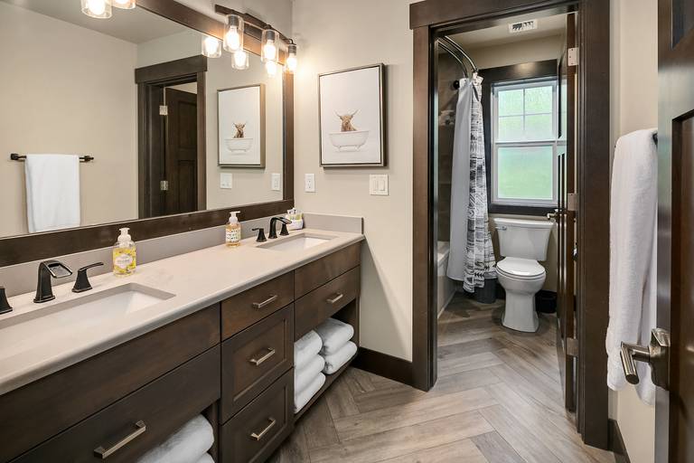 • The 2nd bedroom on the upper floor has a king bed, and shares a large dual sink bathroom with the bunk room.
