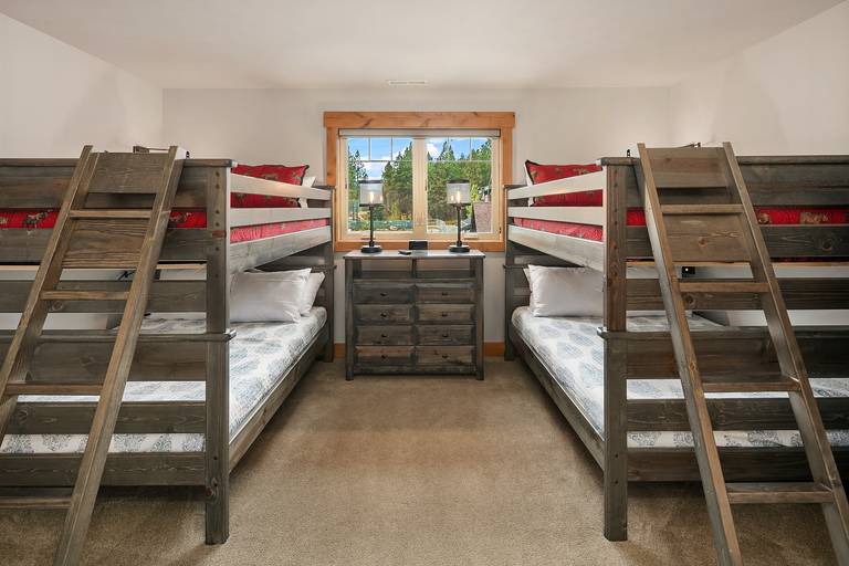 * 4th upper floor bedroom has two sets of full/full bunk beds, a Smart TV and a private bath with dual sinks and a walk-in shower.